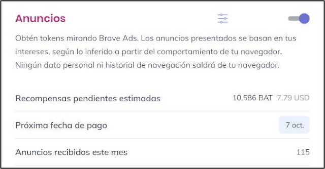 7- ¿Dónde observo mis ganancias obtenidas por los anuncios de Brave?